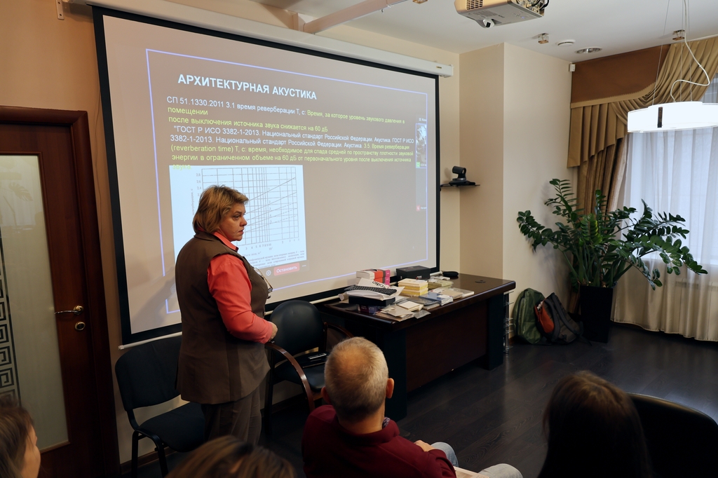 На семинаре спикер подробно рассказала о шуме, его нормативных показателях, рассмотрела необходимость проведения акустических работ с точки зрения законодательства для соблюдения норм шума, установленных санитарными правилами и нормами. Сидорина Анна объяснила, что акустические расчеты проводятся согласно сводам правил для проектирования и контроля шумозащитных мер, представила наиболее востребованы материалы, обеспечивающие звукоизоляцию и звукопоглощение, а также популярны технические решения. Для всех участников семинара были представлены примеры готовых Технических заданий по проведению акустических мероприятий для объектов культурного, спортивного, образовательного и медицинского назначения.